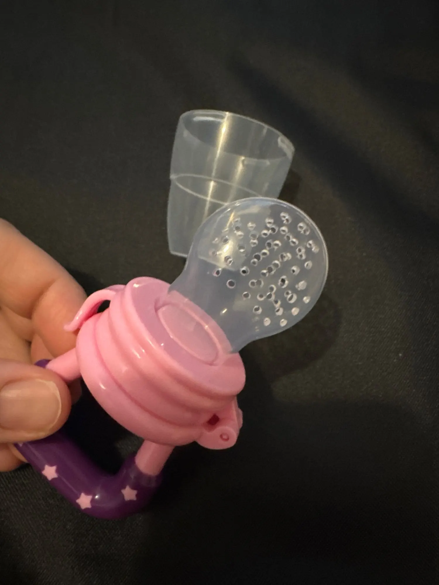 Svar 2: Ja, fruktmataren är tillverkad av BPA-fri och livsmedelssäker silikon, vilket gör den säker för ditt barn. Den har också ett finmaskigt silikonfilter som skyddar kvävning.
